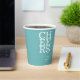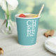 Cet ensemble mariage moderne a une atmosphère chaleureuse et personnelle et de nombreuses pièces présentent un design abstrait et aquarelle ressemblant à des reflets sur l'eau. Cette tasse de papier de coordination a une couleur solide arrière - plan de bleu turquoise profond, typographie frappante de 'Cheers' avec vos noms et date mariage. Recherchez ID774 pour voir l'ensemble complet des produits correspondants et des options de couleur supplémentaires pour cette conception.