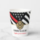 Cette conception comprend un drapeau de pompier avec des rayures noires et blanches, ainsi qu'une fine bande rouge. "Félicitations" et le texte de l'insigne du pompier se trouve au-dessus du nom du pompier, lieutenant ou chef sortant. Fêtez dans le style !