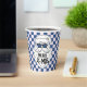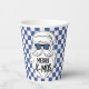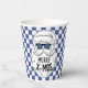 Retro Blue Pink Checkered Santa Claus Christmas Paper Cups.