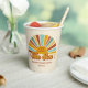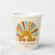 Ces tasses en papier baby shower amusantes et élégantes sont dotées d'un soleil de sauce dessiné à la main dans des tons rétro de terre cuite, de jaune or et d'aqua. La typographie de style vintage / Rétro dit, "Voici le Fils", un jeu de mots mignon qui est parfait pour un bébé garçon en chemin! Une superposition texturée ajoute au look vintage ! *Illustration originale par Orabella Prints.