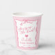 Célébrez la future mariée avec ces tasses à papier à thème rétro, dessinées à la main et rose "elle attache le noeud". Cette tasse en papier de douche à arc rose peut être customisée avec vos propres détails et est disponible en plusieurs couleurs.