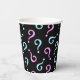 Un motif de points d'interrogation rose et bleu sur un arrière - plan noir pour un bébé sexe révèle la fête. Montré ici sur une tasse de fête en papier. Modifiez facilement la taille de la couleur motif, arrière - plan et ajoutez votre propre texte si vous le souhaitez. Amusant pour n'importe quelle maman !