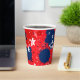 Nous aimons ce design, rouge avec des rayures bleues et des étoiles noires et blanches ! Ces tasses de 8 oz sont disponibles avec ou sans couvercle en plastique.