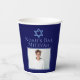 Cette tasse en papier de fête royale bleu Bar Mitzvah a une belle Star de David dessin artistique en haut. Complétez le décor avec votre nom personnalisé et votre photo.