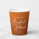 This rustic burnt orange bridal shower party paper cup features beautiful white typography for an autumn party featuring boho colors for a fall wedding. Minimalist white typography for a bohemian bride.
