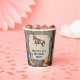 Saddle-up et galop-over pour une fête d'anniversaire amusante à cheval. Un arrière - plan en planches de bois suggère l'intérieur d'une écurie. Le panneau couleur crème est équipé d'un cheval monté et prêt à accueillir les invités pour une journée amusante avec des chevaux. Une paire de bottes de cowboy et un casquette de cowboy sont placés au fond de la tasse avec des ornements de style occidental qui accusent le design. Disponible avec des produits correspondants.