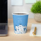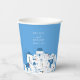 Un beau design de tasse en papier avec illustration rustique de Santorin, églises à coupole bleue, Bougainvillea, plantes de pot en terre cuite avec un arrière - plan de mur blanc de l'île grecque. Destination élégante Santorin, design de mariage grec parfait pour Santorin et les mariages de style méditerranéen de l'île grecque. Des invitations de mariage et d'autres articles de papeterie sont également disponibles.