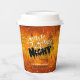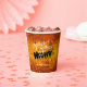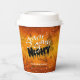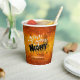 Des branches effrayantes s'étendent sur une maison hantée qui se dresse dans un ciel nocturne brumeux, parsemé de chauves-souris noires et de visages de citrouilles grimaçants. La typographie en gras de 'Scary Scary Night', ainsi que votre propre nom et message (nous avons ajouté 'manger, boire & être prudent' comme exemple) sur ce gobelet en papier coloré, ajoute la touche finale pour un Joyeux Halloween. Recherchez ID946 pour voir d'autres produits et options de couleur pour ce design effrayant d'Halloween.