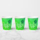 Good Luck Four Leaf Clover Shamrock St. Patrick's day Paper Cups. Motif moderne abstrait vert avec la typographie blanche tendance citée Bonne chance et trèfle dessiné à la main avec quatre feuilles pour la chance.