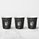 Cette collection de mariages à thème gothique foncé est adaptée à n'importe quelle période de l'année, y compris le Jour des Morts, Dia de los muertos et Halloween. L'ensemble comprend des crânes, des squelettes, des cadres de défilement ornés et des fleurs luxuriantes, le tout en noir et argent avec des accents bordeaux. Des skeletons ornés d'arc, d'ascot et de moustache sur un coeur grunge arrière - plan ajoutent à l'humeur gothique de cette tasse de papier. La calligraphie facultative "Jusqu'à la mort faites-nous partie" a été fournie. Ajoutez votre nom, votre nom et votre date de mariage pour personnaliser. Recherchez ID866 pour voir d'autres produits et options de couleur pour cet ensemble de conceptions.