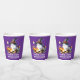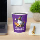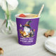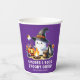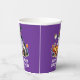 Faites des tasses en papier personnalisées violet amusantes pour la fête d'Halloween thème du camping avec des enfants avec un design mignon qui présente un fantôme joyeux dans un casquette sorcier torréfiant des marshmallows au feu de camp. Le graphisme est avec le dicton "S'more & Boos Éffrayant Crew." Le modèle vous permet de customiser facilement avec votre nom de famille ou tout texte pour la fête extérieure non éffrayante avec enfants.