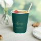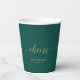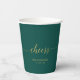 Ce design de tasse en papier présente des lettres "Cheers" stylisées en or et vert émeraude. Vous pouvez customiser le texte et ajouter cette tasse de papier à n'importe quel événement (fête d'anniversaire, mariage, anniversaire, fête de la retraite, fête de vacances, etc). Les invitations et les fournitures de fête correspondants sont disponibles dans ma boutique BaraBomDesign.