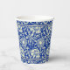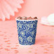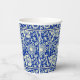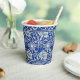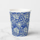 Cette tasse en papier présente une masse d'oeillets couleur ivoire et d'autres fleurs communes de cottage parsemées autour, helter-skelter, contre un arrière - plan bleu marin moyen, un motif inspiré d'un motif de papier peint de l'époque victorienne préféré.