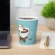 Drôle chat se relaxant avec (dans) un café, avec un croissant.