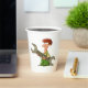Un dessin comme un mécanicien tenant un géant. Cette conception semble vraiment efficace sur ces tasses de papier