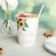 Sunflower Baby in Bloom thème baby showers tasses en papier. "Bébé en fleur" est en jaune de style manuscrit moderne. Personnalisez avec vos détails.