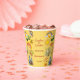 Organisez une fête sur mesure avec une belle tasse de papier d'anniversaire avec beaucoup de soleil et des arcs-en-ciel, surtout pour les enfants. Le design comprend des arcs-en-ciel, du soleil souriant, du soleil, des fleurs printanières, des papillons, des colibris, de la verdure et du feuillage, des éléments parfaits pour un jardin de printemps. Idéal pour la fête d'anniversaire des enfants. Le texte peut être facilement customisé.