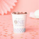 Célébrez vos filles super dès le premier anniversaire avec notre lavande ludique à damiers 'ONE RAD CHICK' anniversaire vaisselle jetable tasse de papier. Ce design présente un visage heureux facile à aimer avec des lunettes de signe de paix et des motifs ondulés roses poussiéreux à damiers.