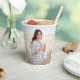 Ajoutez une touche élégante aux décorations de la fête de 16 ans de Sweet avec 2 tasses de papier photo personnalisées. Tout le libellé de ce modèle est simple à personnaliser et les images peuvent être différentes ou les mêmes sur l'avant et l'arrière. (CONSEIL EN MATIÈRE DE PLACEMENT D'IMAGE : Une façon simple de positionner une photo exactement comment vous voulez est de la rogner avant de la télécharger sur le site Zazzle.) Le design chic noir et blanc de superposition comprend une calligraphie manuscrite tendance, une typographie classique simple et minimale et deux images de votre choix. Ces élégantes tasses customisées apportent une touche de finition unique au décor de célébration du 16ème anniversaire. Joyeux seizième anniversaire !