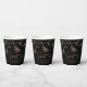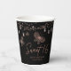 Sweet 16 Rose Gold Butterfly Chic Modern Birthday Paper Cups dispose d'élégants papillons roses en or avec des lampes à cordes sur un arrière - plan noir avec Sweet 16 en élégant script de calligraphie avec "Happy Birthday" et personnalisée avec votre nom personnalisé ci-dessous. Personnalisez en modifiant le texte dans les zones de texte. Conçu pour vous par ©Evco Studio www.zazzle.com/store/evcostudio