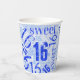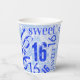 "Joyeux Anniversaire Sweet 16" texte en bleu avec des effets de parties scintillant étincelante forme ce mot élégant design de tasse de papier cloud. La couleur Arrière - plan est facultative et peut être modifiée si elle est préférée. Recherchez ID265 pour voir d'autres choix de couleurs et d'autres produits avec cette conception.