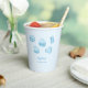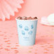 Coupe en papier de fête à thème Saint Valentin douce et mignonne avec illustration de macarons bleus en forme de coeur.