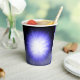 tasse de papier avec arrière - plan noir fumée avec une éclat de violet et de lumière blanche