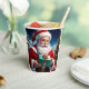 Cette tasse en papier présente une palette festive de couleurs rouge et vert ornée d'illustrations joyeuses du Père Noël et des arbres de Noël. Le design intègre une typographie ludique qui épelle les salutations de vacances, ajoutant une touche chaleureuse et accueillante parfaite pour les boissons saisonnières et les cadeaux de Noël. Il évoque une atmosphère cosy, faisant de chaque sip une fête.