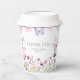 Ces tasses en papier font partie de la collection de baby showers papillons caractérisés par des papillons d'aquarelle et des fleurs de couleur rose, rousse et violette. Découvrez toute la collection : https://www.zazzle.com/collections/butterfly_baby_shower_collection-119128754303359559?rf=238902700998779330