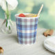 Ces tasses en papier moderne sont décorées d'un motif couleur écossais (plaid) aux couleurs blanches, bleues et taupes (gris brunâtre).