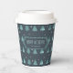 Cette tasse en papier présente un motif de sapins stylisés et de flocons de neige dans les tons bleu vedette sur un arrière - plan bleu turquoise foncé. Un texte optionnel "Joyeux Fêtes" et un étiquette ont été fournis pour ajouter votre nom et/ou un autre texte. Faites une recherche ID861 à ID864 pour voir d'autres options de couleurs et d'autres produits dans cet ensemble moderne de design de Noël.