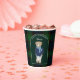 Teddy bear navy blue emerald green plaid vintage birthday party personalized printed paper cups, teddy bear party cups, cute teddy bear birthday party personalized table decor , simple modern birthday coffee cups, emerald green plaid birthday party decor, classic teddy bear birthday personalized party supplies