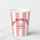 Elevate your 40th birthday celebration with The Forty Club Pink Cabana Stripe Party Paper Cups, featuring red retro lettering set against chic pale pink cabana stripes, these customizable paper cups are perfect for elevating your 40th birthday decor, adding a fun, coastal vibe these paper cups can be fully personalized with your milestone year and destination. Whether you're hosting a beach bash, poolside gathering, or chic destination party, these paper cups bring personality and charm to any gathering.