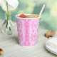 Motif de teinture pastel couleur rose et blanc. Tasses en papier motif à dos rose shibori hippie spirale design