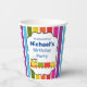 Jouet de dessin animé coloré s'entraîne sur une bannière bleue. Modèles pour ajouter votre nom ou supprimer le texte dans les zones de texte pour laisser vide. Arrière - plan multicolore à rayures arc-en-ciel.