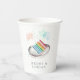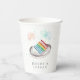 Parfaits pour les fêtes de fiançailles, les dîners de répétition ou les douches de mariage, ces gobelets en papier festifs présentent une tranche de gâteau à étages aux couleurs de l'arc-en-ciel en aquarelle, surmontée de ciercles magiques et de confettis aqua. Personnalisez avec vos noms et date de mariage ou date de l'événement en dessous.