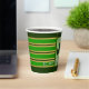 Carte postale irlandaise vintage pour la St Patrick's Day. Conception sur tasse de papier de fête avec rubans verts et jaunes + St Patrick's Day sur arrière - plan vert foncé.