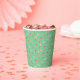 Tulipes et papillons vertes motifs tasses en papier. Le design présente des tulipes rose, jaune et orange sur un arrière - plan vert. Des papillons roses et jaunes se bousculent autour des tulipes, rehaussant l'esthétique joyeuse avec une touche fantaisiste !
