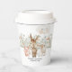 Ces tasses en papier présentent une scène de ferme pastel avec un cochon, un âne et de l'agneau réunis par une palissade fleurie donne un ton doux et capricieux pour un baby shower plein de charme rustique et de joie douce. Convient à un bébé garçon ou une fille. L'arrière est orné d'un jeune cheval blanc à l'aquarelle derrière une clôture en bois, créant un cadre rustique et confortable, parfait pour une fête à la campagne. Personnalisez avec vos propres informations.