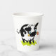 Une adorable vache noire et blanche avec une fleur en bouche. Cette conception semble vraiment efficace sur ces tasses de papier
