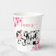 Vaisselle de fête de vache rose motif de nom personnalisé imprimé tasses de papier de partie modèle. Joli bébé vache et coeurs fantaisie script de calligraphie de police pour l'anniversaire des filles de la ferme.