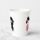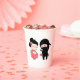 Adorable petite ninja habillée en noir rougit timidement tout en tenant un coeur en papier origami derrière son dos et en regardant une mignonne geisha en robe kimono rouge et une ceinture obi jaune.
