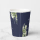 Gobelets En Papier Vert Floral Élégant Mariage bleu marine