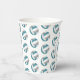 Ces tasses de papier de fête d'anniversaire sur le thème du volley-ball comportent plusieurs petites boules de volley turquoises, grises et blanches disposées en simple motif à goutte - le texte sur un graphique en cercle blanc peut être customisé, actuellement le numéro 12 pour représenter l'âge d'un enfant encerclé par les mots "Joyeux anniversaire" - par katz_d_zynes