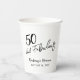 White. Fifty and Fabulous Script Birthday Party Paper Cups.