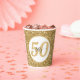 Parties scintillant blanche et or joyeuses tasses de papier d'anniversaire pour un 50 ans. Design de glamour étincelant idéal pour les femmes. Customisez l'âge qui convient à votre occasion. Grande décoration de fête d'anniversaire pour un bain de cinquantième anniversaire.