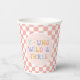 Young Wild and Three ! Retro checker imprimé avec Daisies Coupes de fête d'anniversaire en rose.