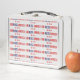 This is a standard metal lunchbox that appears to work just fine. We designed this box ourselves with an uploaded photo and custom text on the front and back. It looks absolutely beautiful except the front of the lunchbox is not centered like it shows in the photo. The print borders don't align with the inset flat part of the box where the preview photo online showed it perfectly centered in there. The back looks nice and centered though.