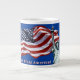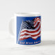 This patriotic mug ... depicts a waving American Flag in a clear blue sky with the Statue of Liberty standing proudly in front ... with "God Bless America" ... reminding all that the USA is ... the land of the free and home of the brave! (This design is also the logo of USA Patriotism!)