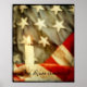 Be a patriot with this image of a single candle with an old and worn, but much beloved American flag in the background - with the words: God Bless America. Customizable to personalize as you please.